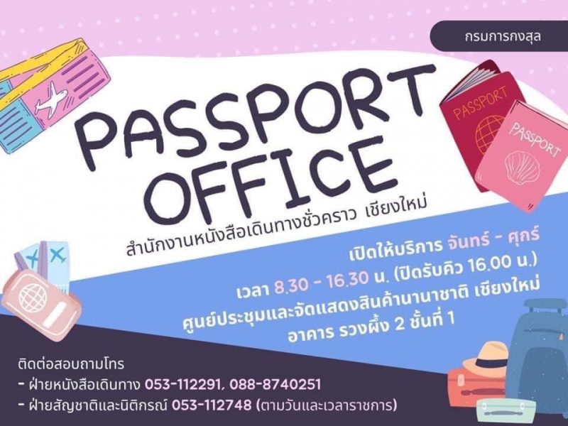 16 มี.ค. 2564 เริ่มทำพาสปอร์ต5ปี/10 ปี ที่ศูนย์ประชุมและแสดงสินค้านานาชาติฯ จ.เชียงใหม่