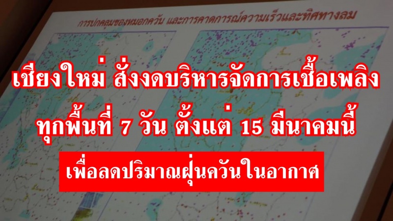 จังหวัดเชียงใหม่ ประชุมรายงานผลการปฏิบัติงานและการแก้ไขปัญหาไฟป่าหมอกควัน ช่วงเดือนมกราคมและกุมภาพันธ์ พร้อมสั่งงดบริหารจัดการเชื้อเพลิงทุกพื้นที่ 7 วัน ตั้งแต่ 15 มีนาคม นี้ เพื่อลดปัญหาฝุ่นควันสะสมในพื้นที่