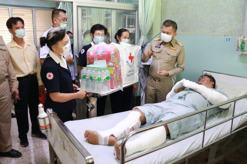 ผู้ว่าราชการจังหวัดลำพูน เยี่ยมและให้กำลังใจราษฎรจิตอาสาดับไฟป่า ตำบลป่าพลู อำเภอบ้านโฮ่ง ที่ได้ประสบอุบัติเหตุและได้รับการบาดเจ็บจากการปฏิบัติงานดับไฟป่าในพื้นที่