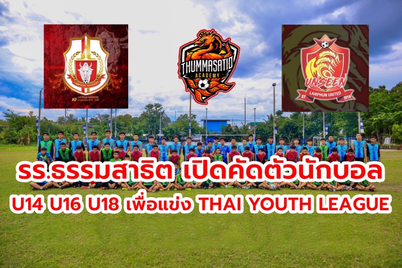 | • รร.ธรรมสาธิต เปิดคัดตัวนักบอล U14 U16 U18 เพื่อแข่ง THAI YOUTH LEAGUE ในนามสโมสรลำพูนวอริเออร์ และ สโมสรอันซีนลำพูน ยูไนเต็ด |