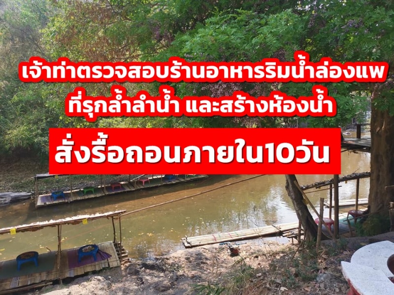เจ้าท่าตรวจสอบร้านอาหารริมน้ำล่องแพ อ.แม่วาง ที่มีการรุกล้ำลำน้ำสั่งรื้อถอนภายใน10วัน