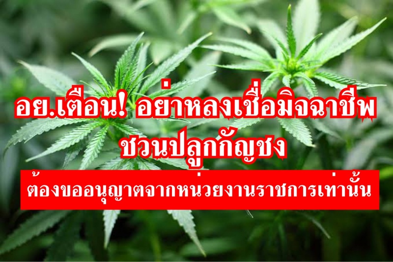 อย.เตือน อย่าหลงเชื่อมิจฉาชีพชวนปลูกกัญชง