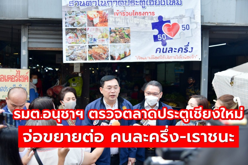 | • รมต.อนุชาฯ ตรวจตลาดประตูเชียงใหม่ เชื่อมั่นจะขยายต่อโครงการคนละครึ่ง-เราชนะ |