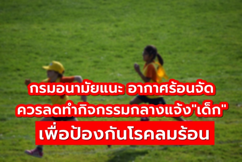 | • กรมอนามัยแนะ อากาศร้อนจัด ควรลดเวลาให้เด็กทำกิจกรรมกลางแจ้ง เพื่อป้องกันโรคลมร้อน |