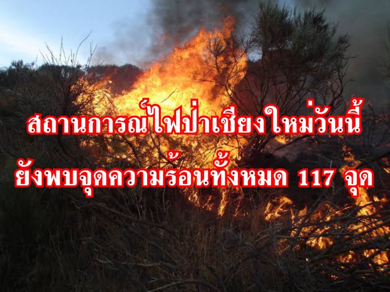 | • สถานการณ์ไฟป่าวันนี้ ยังพบจุดความร้อนทั้งหมด 117 จุด |