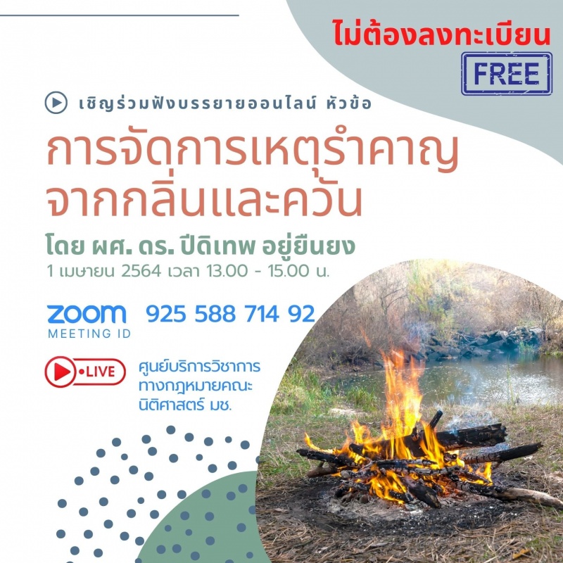 เชิญร่วมการบรรยายออนไลน์ ในหัวข้อ "การจัดการเหตุรำคาญจากกลิ่นและควัน" ในวันที่ 1 เมษายน 2564 เวลา 13.00 น. ได้ 2 ช่องทาง ดังนี้