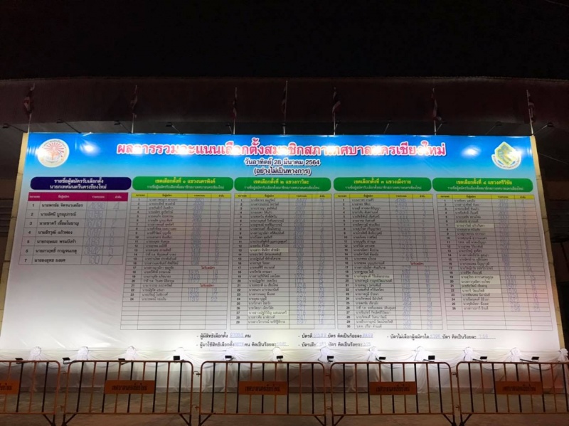 ผลการรวมคะแนนเลือกตั้งสมาชิกสภาเทศบาลนครเชียงใหม่ และนายกเทศมนตรีนครเชียงใหม่ (อย่างไม่เป็นทางการ) ณ เวลา 01.00 น. วันที่ 29 มีนาคม 2564