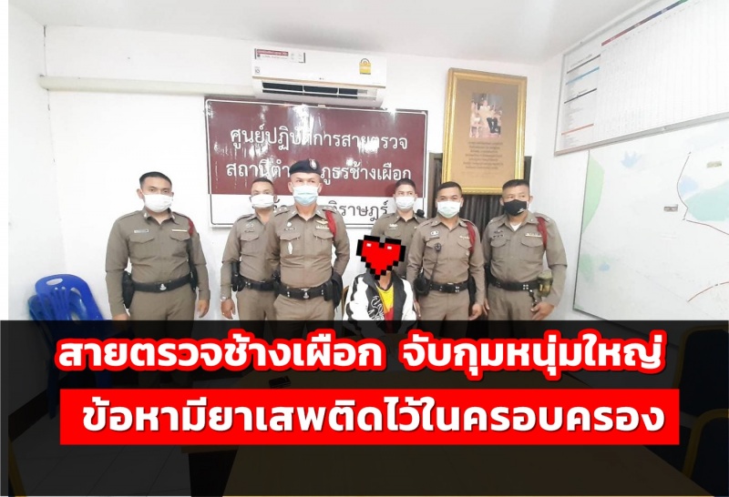 สายตรวจช้างเผือก จับกุมหนุ่มใหญ่ ข้อหามียาเสพติด (เฮโรอีน) ไว้ในครอบครอง