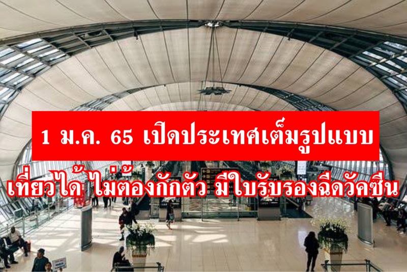 | • ครม.ไฟเขียว นำร่องเปิดประเทศ 4 ระยะ ก่อนเที่ยวอิสระแบบไม่ต้องกักตัว เริ่ม 1 มกราคม 2565 เที่ยวได้ไม่ต้องกักตัว หากมีใบรับรองการฉีดวัคซีน |