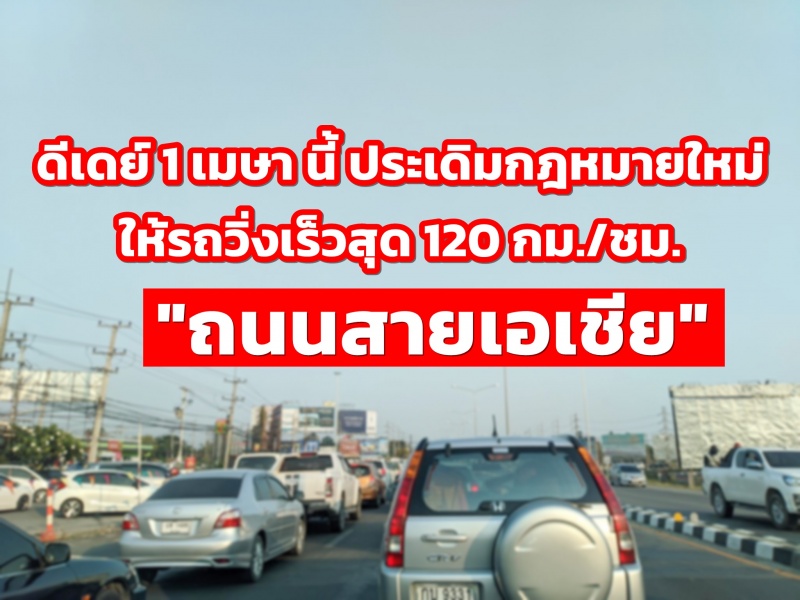ดีเดย์ 1 เมษา นี้ ประเดิมกฎหมายใหม่ ให้รถวิ่งเร็วสุด 120 กม./ชม. ถนนสายเอเชีย