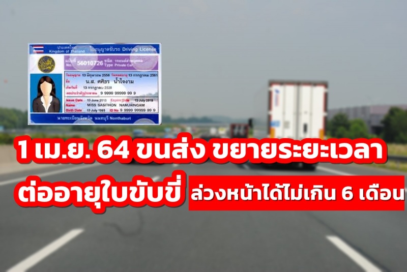 | • 1 เม.ย. 64 ขนส่ง ขยายระยะเวลาต่ออายุใบขับขี่ล่วงหน้าได้ไม่เกิน 6 เดือน |