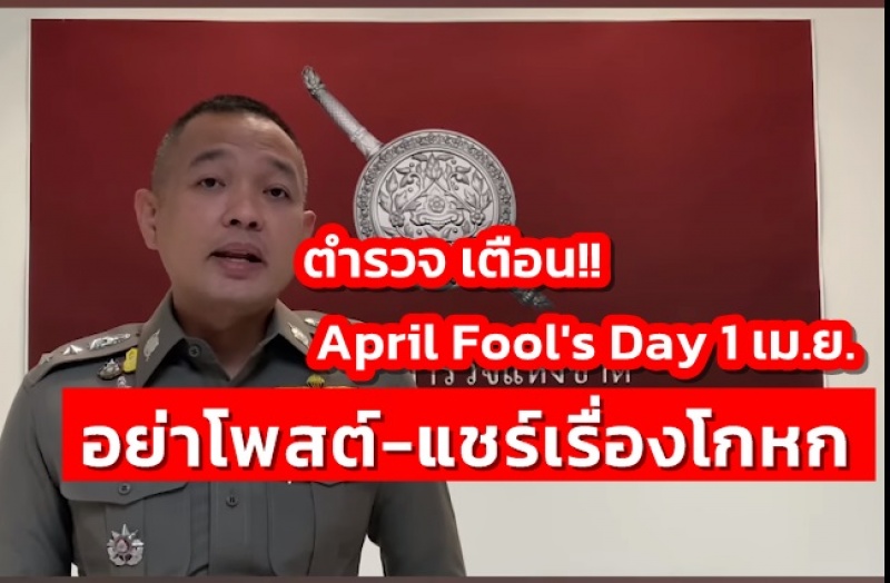 รอง โฆษก ตร. เตือน April Fool's Day 1 เม.ย. ไม่ห้ามให้เล่น แต่อย่าโพสต์-แชร์เรื่องโกหก ที่ทำให้ผู้อื่นเดือดร้อนหรือเป็นข้อมูลที่ผิดกฎหมาย อาจติดคุกได้