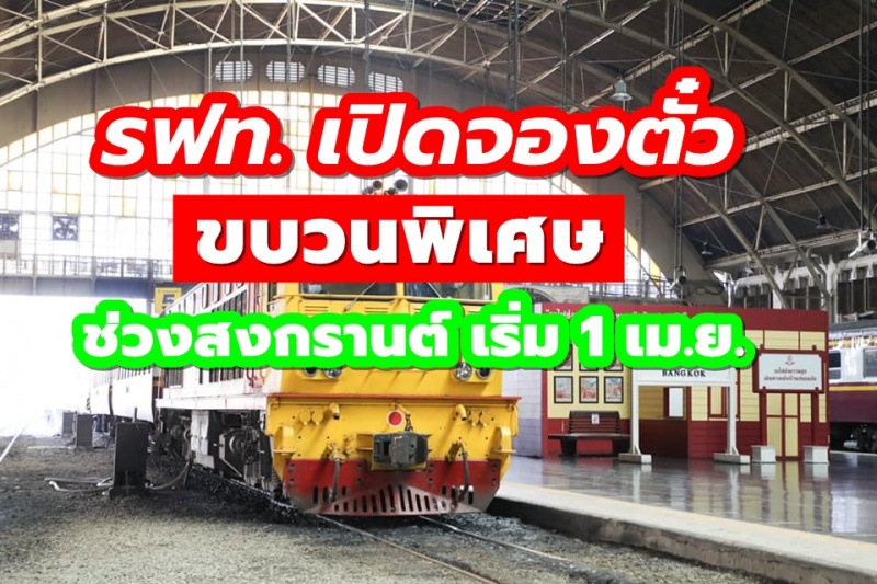 การรถไฟฯ เปิดจองตั๋วโดยสารขบวนรถพิเศษ เดินทางช่วงเทศกาลสงกรานต์ เริ่มวันที่ 1 เมษายน 2564 เป็นต้นไป