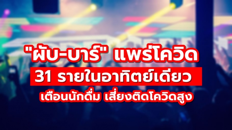 | • สธ.เจออีก "ผับ-บาร์" แพร่โควิด 31 รายในอาทิตย์เดียว เตือนนักดื่ม เที่ยวหนัก เสี่ยงติดโควิดสูง |