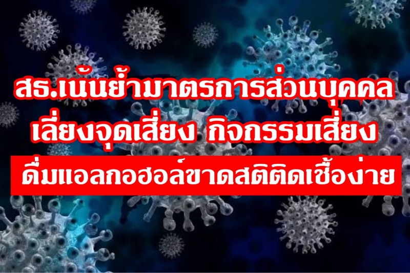 สธ.เน้นย้ำมาตรการส่วนบุคคล เลี่ยงจุดเสี่ยง กิจกรรมเสี่ยง ดื่มแอลกอฮอล์ขาดสติติดเชื้อง่าย