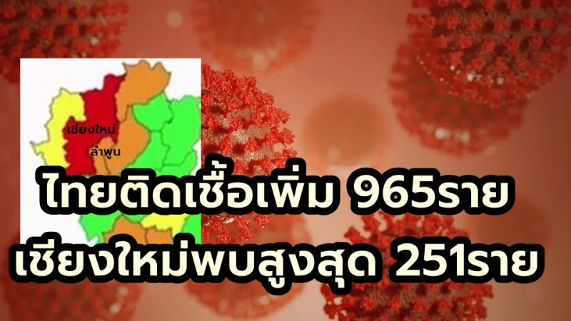 ศคบ. รายงาน ติดเชื้อในประเทศเพิ่ม 965ราย เชียงใหม่พบสูงสุด 251ราย