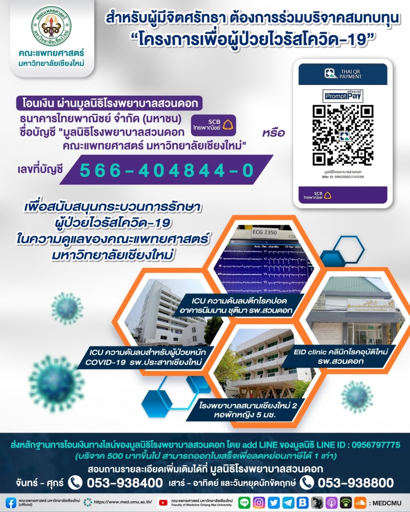 | • รพ.สวนดอก เชิญผู้มีจิตศรัทธา ร่วมบริจาคสมทบทุน "โครงการเพื่อผู้ป่วยไวรัสโควิด-19" |