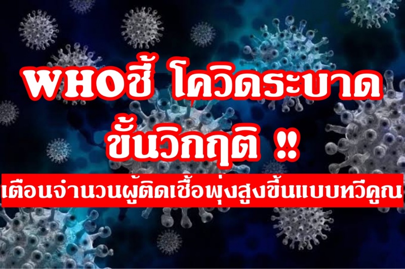 ด้านองค์การอนามัยโลกชี้ว่า การระบาดของโรคโควิด-19 ในขณะนี้อยู่ในขั้นวิกฤติ พร้อมเตือนว่าจำนวนผู้ติดเชื้อกำลังพุ่งสูงขึ้น แม้มีความพยายามอย่างมากเพื่อหยุดยั้งการแพร่ระบาด