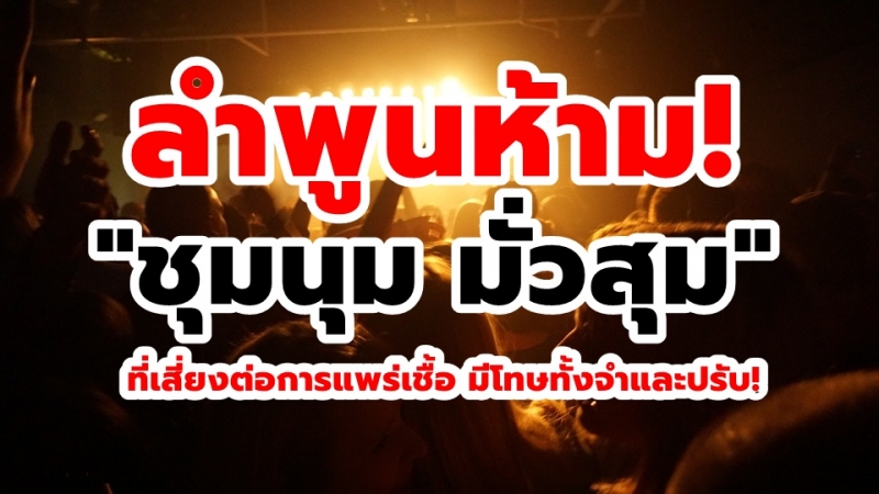| • ลำพูนประกาศ "ห้ามชุมนุม ทำกิจกรรม มั่วสุม" ที่เสี่ยงต่อการแพร่เชื้อ มีโทษทั้งจำและปรับ! |