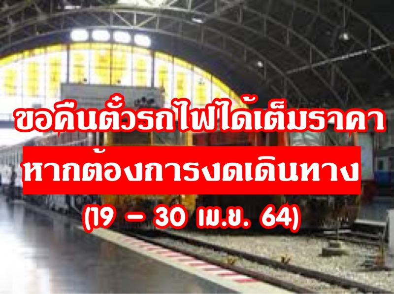 | • ขอคืนตั๋วรถไฟได้เต็มราคา หากต้องการงดเดินทาง 19 - 30 เม.ย. 64 |