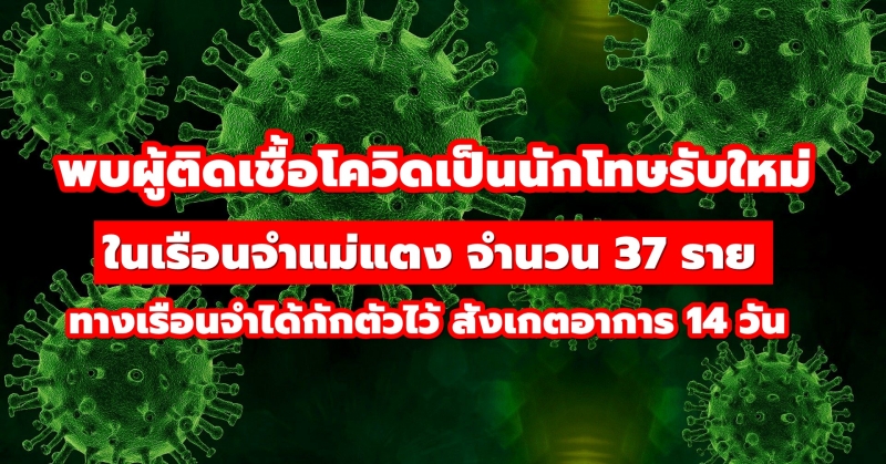 | • พบผู้ติดเชื้อโควิดเป็นนักโทษรับใหม่ในเรือนจำแม่แตง จำนวน 37 ราย ทางเรือนจำได้กักตัวไว้เพื่อสังเกตอาการ 14 วัน |