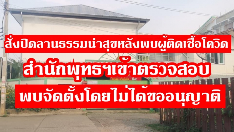 | • สั่งปิดลานธรรมนำสุขหลังพบผู้ติดเชื้อโควิด สำนักพุทธฯเข้าตรวจสอบพบจัดตั้งโดยไม่ได้ขออนุญาติ |