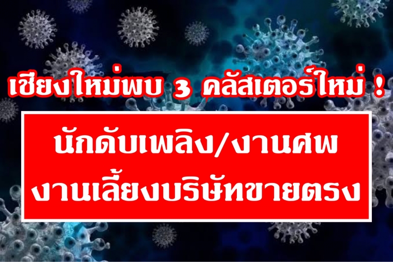 | • เชียงใหม่พบ 3 คลัสเตอร์ใหม่ ! (นักดับเพลิง/งานศพ งานเลี้ยงบริษัทขายตรง) |