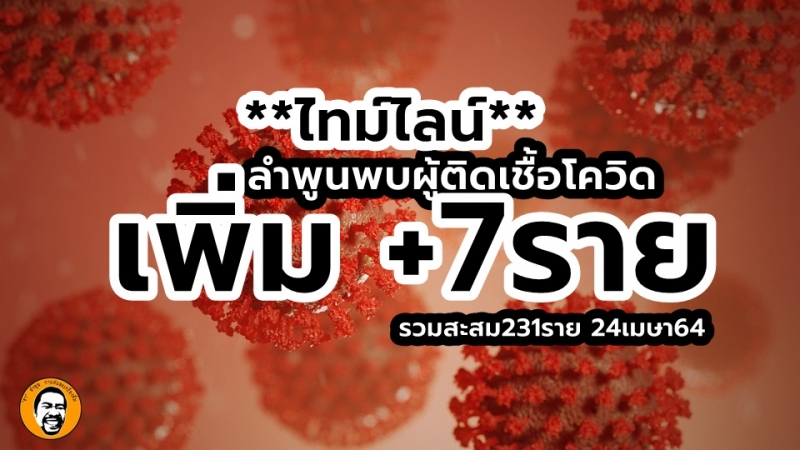 วันนี้ 24 เมษา 64 จ.ลำพูนพบผู้ติดเชื้อใหม่ 7ราย(เมือง4 บ้านโฮ่ง2 เวียงหนองล่อง1) สะสม 231ราย รักษาหายกลับบ้านแล้ว 14ราย