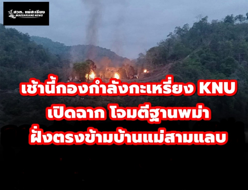 เช้านี้กองกำลังกะเหรี่ยง KNU เปิดฉาก โจมตีฐานพม่าฝั่งตรงข้ามบ้านแม่สามแลบ ฝ่ายความมั่นคงปิดกั้นพื้นที่ไม่ให้ผู้มีส่วนเกี่ยวข้องเข้าพื้นที่หวั่นอันตรายจากการสู้รบ
