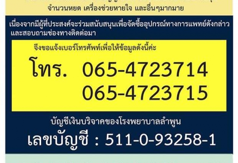 | • ช่วย!!! รพ.ลำพูนจัดซื้ออุปกรณ์ทางการแพทย์(สร้างห้องไอซียู) เพื่อรองรับผู้ป่วยโควิด19 |