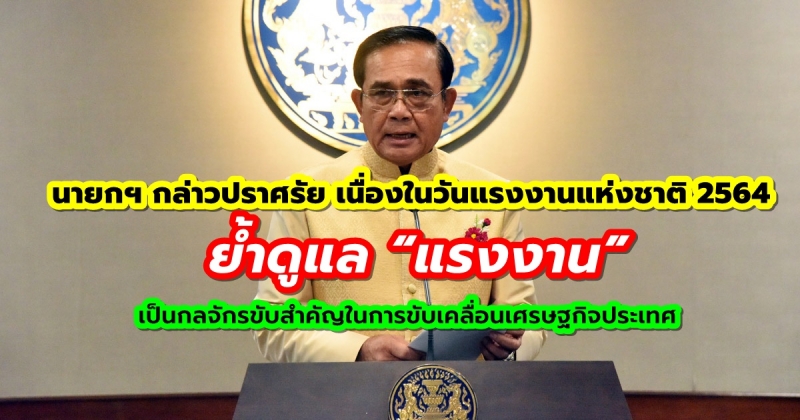 นายกฯ กล่าวปราศรัย เนื่องในวันแรงงานแห่งชาติ 2564 ย้ำดูแล “แรงงาน” เป็นกลจักรขับสำคัญในการขับเคลื่อนเศรษฐกิจประเทศ