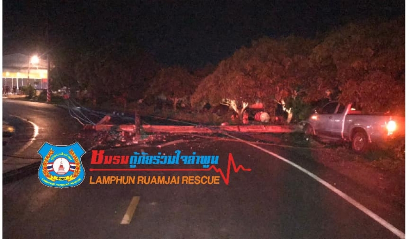 เบื้องต้นไม่มีผู้ได้รับบาดเจ็บ เสาไฟฟ้าหักเสียหาย ขวางถนนทำให้การจราจรติดขัด