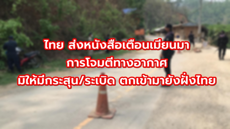 | • ไทย ส่งหนังสือเตือนเมียนมา ให้ระมัดระวังการปฏิบัติการทางทหาร มิให้มีกระสุน/ระเบิด ตกเข้ามายังฝั่งไทย |