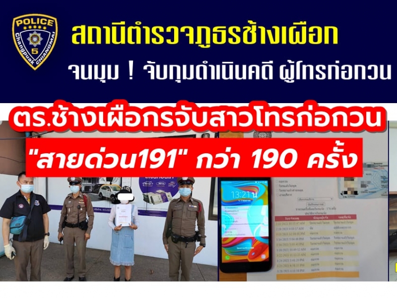 .ตร.ช้างเผือกรจับสาวโทรก่อกวน"สายด่วน191" กว่า 190 ครั้ง