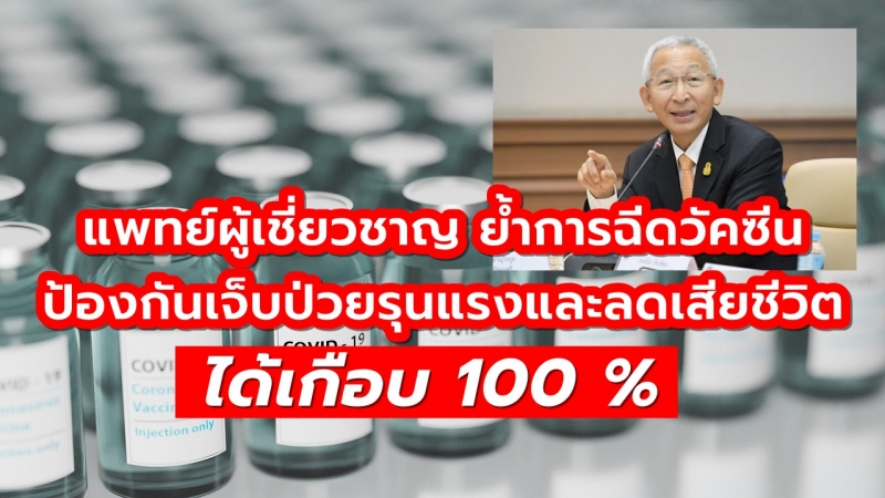 | • แพทย์ผู้เชี่ยวชาญ ย้ำการฉีดวัคซีน ป้องกันเจ็บป่วยรุนแรงและลดเสียชีวิต ได้เกือบ 100% |
