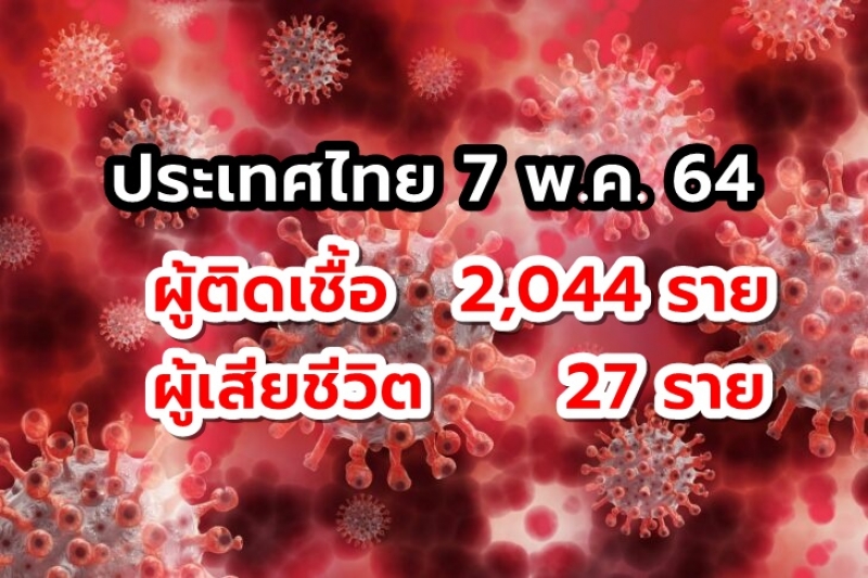 ประเทศไทย 7 พ.ค. 64 ผู้ติดเชื้อรายใหม่ 2,044 ราย ผู้เสียชีวิต 27 ราย