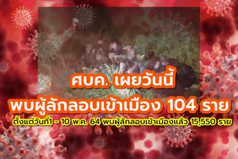 ศบค. เผย วันเดียวพบผู้ลักลอบเข้าเมือง 104 ราย ตั้งแต่วันที่ 1 - 10 พ.ค. 64 พบผู้ลักลอบเข้าเมืองแล้ว 15,550 ราย