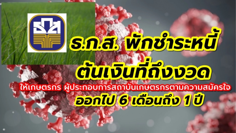 ธ.ก.ส. พักชำระหนี้ต้นเงินที่ถึงงวดชำระให้กับเกษตรกร ผู้ประกอบการและสถาบันเกษตรกรตามความสมัครใจ ออกไป 6 เดือนถึง 1 ปี โดยผู้มีสิทธิ์กว่า 2.82 ล้านราย