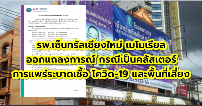 รพ.เซ็นทรัลเชียงใหม่ เมโมเรียลออกแถลงการณ์กรณีเป็นคลัสเตอร์การแพร่ระบาดเชื้อ โควิด-19 และพื้นที่เสี่ยง