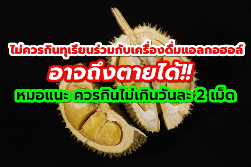 | • ไม่ควรกินทุเรียนร่วมกับเครื่องดื่มแอลกอฮอล์ อาจถึงตายได้!! หมอแนะ ควรกินไม่เกินวันละ 2 เม็ด |