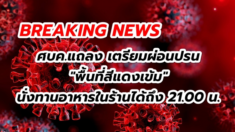 BREAKING NEWS>> แถลง ที่ประชุม ศบค. เตรียมผ่อนปรนพื้นที่สีแดงเข้ม นั่งทานอาหารในร้านได้ถึง 21.00 น.