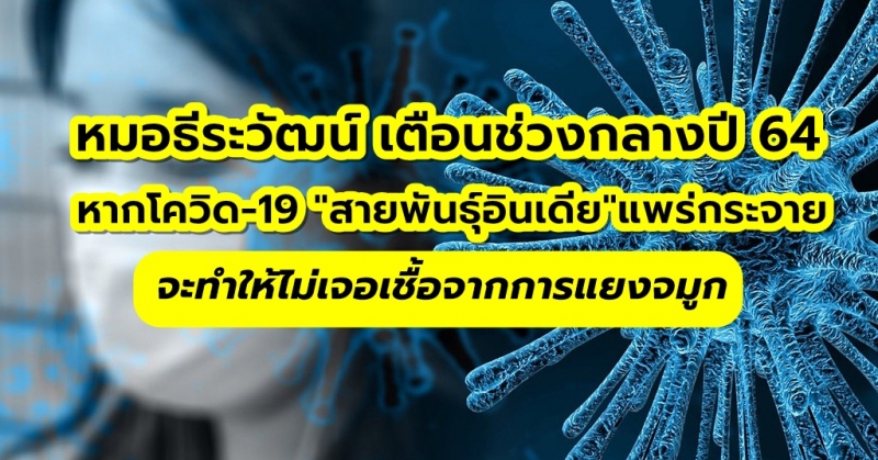 หมอธีระวัฒน์ เตือนคนไทยช่วงกลางปี 2564 หากโควิด-19 สายพันธุ์อินเดียแพร่กระจาย จะทำให้ไม่เจอเชื้อจากการแยงจมูก ส่งผลต่อวัคซีนทั้งหมด