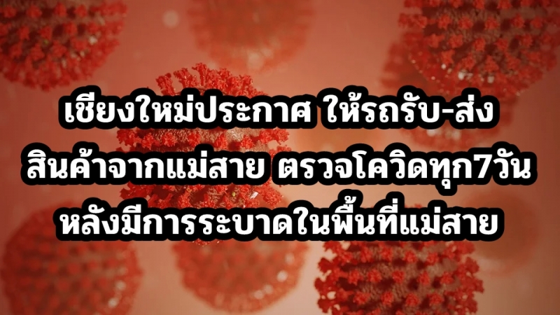 | • เชียงใหม่ประกาศ ให้รถรับ-ส่ง สินค้าจากแม่สาย ตรวจโควิดทุก7วัน เนื่องจากมีการระบาดที่แม่สาย |