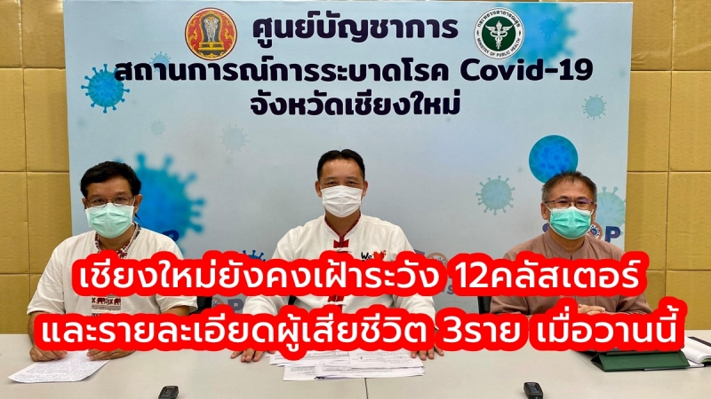| • เชียงใหม่ยังคงเฝ้าระวัง 12คลัสเตอร์ และรายละเอียดผู้เสียชีวิต 3ราย เมื่อวานนี้ |