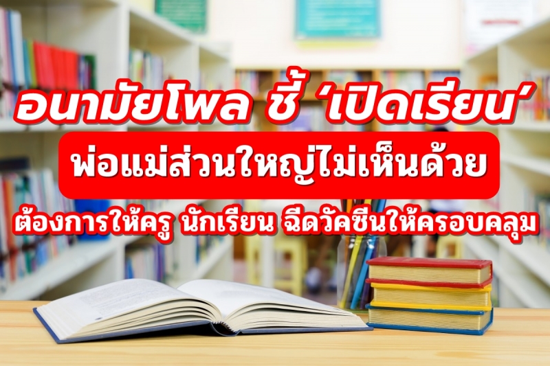 | • อนามัยโพล ชี้ เปิดเรียน พ่อแม่ส่วนใหญ่ไม่เห็นด้วย ต้องการให้ครู นักเรียน ฉีดวัคซีนให้ครอบคลุม |