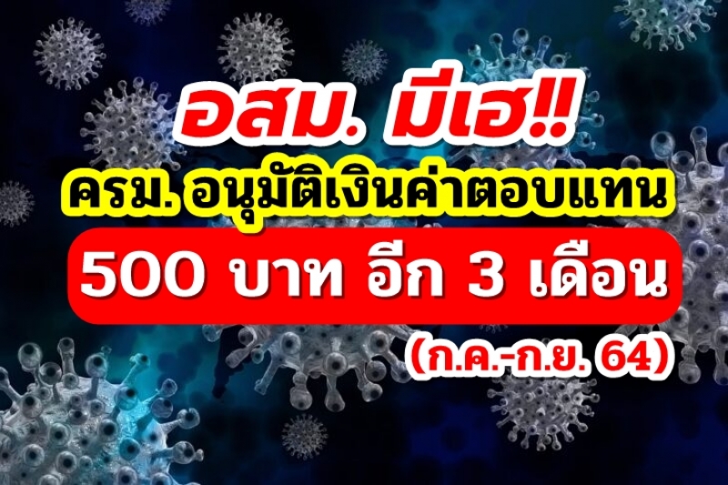 ครม.อนุมัติ ชดเชยค่าเสี่ยงภัย อสม.500 บาท อีก 3 เดือน( ก.ค.-ก.ย. 64)