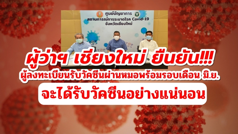 ผู้ว่าฯ เชียงใหม่ ยืนยันผู้ลงทะเบียนรับวัคซีนผ่านหมอพร้อมรอบเดือน มิ.ย. จะได้รับวัคซีนอย่างแน่นอน