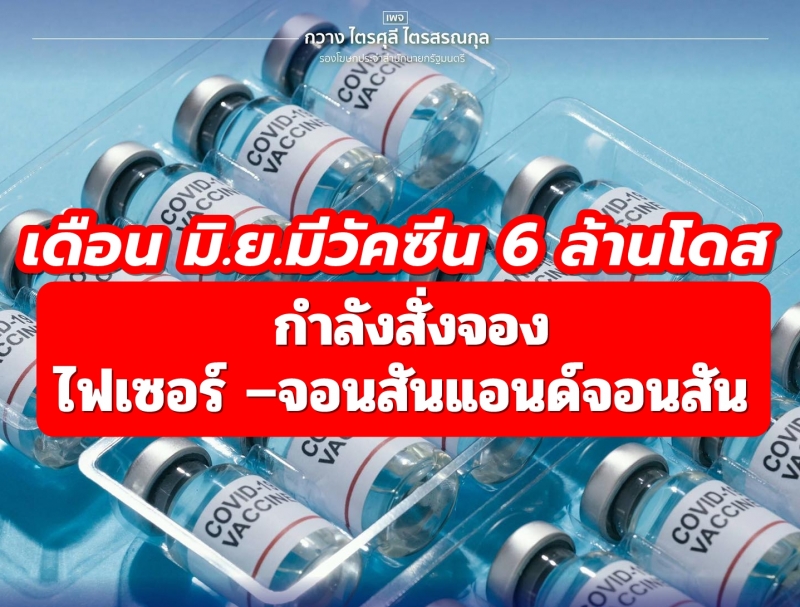 | • เดือน มิ.ย.มีวัคซีน 6 ล้านโดส กำลังสั่งจอง ไฟเซอร์ จอนสันแอนด์จอนสัน |