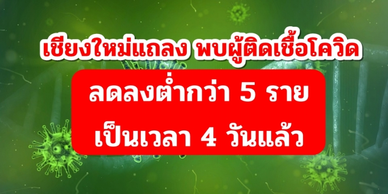 เชียงใหม่ พบผู้ติดเชื้อโควิดลดลงต่ำกว่า 5 ราย เป็นเวลา 4 วันแล้ว พร้อมขอความร่วมมือพี่น้องเชียงใหม่การ์ดห้ามตก รักษามาตรการป้องกันโรคอย่างเคร่งครัด และร่วมใจกันฉีดวัคซีนป้องกันโรค COVID-19 เพื่อเป็นกำแพงกันโรคให้คนเชียงใหม่