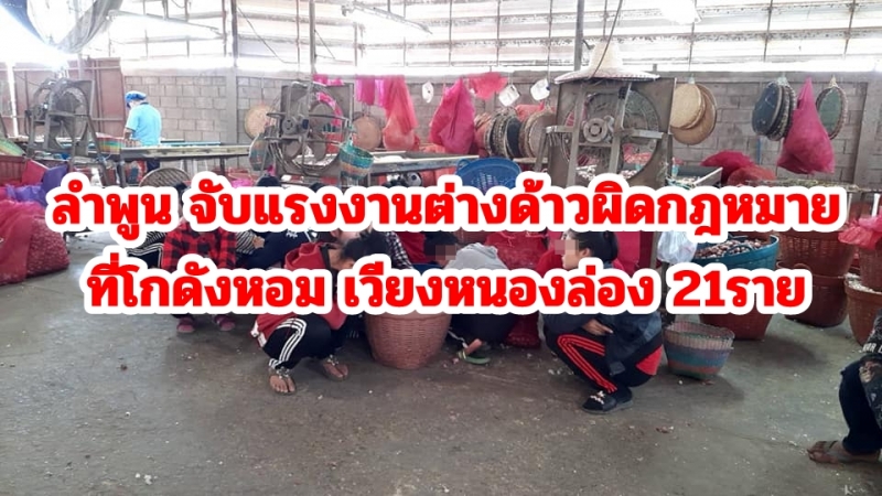 ฝ่ายปกครองจังหวัดลำพูน นำกำลังบุกจับกุมแรงงานต่างด้าวผิดกฎหมายในโกดังรับซื้อขายหอม ในพื้นที่อำเภอเวียงหนองล่อง ได้ 21 คน นำตัวผู้ประกอบการและแรงงานต่างด้าวส่งดำเนินคดี